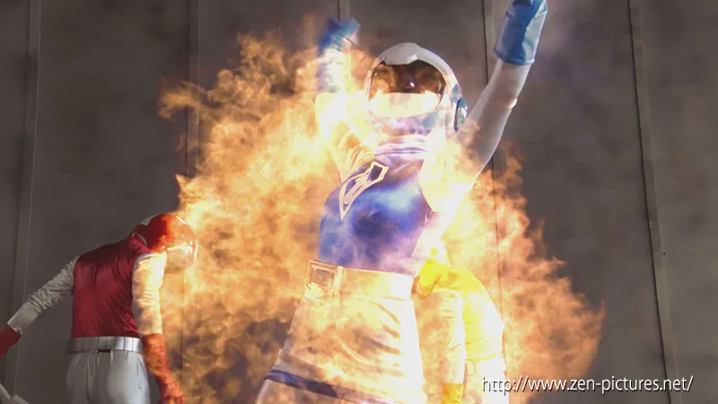 作品としては三代目。キャラクターとしては四代目のブルーマーメイドを嶋村瞳さんに演じていただきました。ずっと新しいアースファイターを撮りたいと思っていたのですが、パワーエンジェルを撮影しているとき、嶋村さんしかいない!と思ってオファーをして快諾していただきました。思った通り新たな魅力のブルーマーメイドにしてくれました。初めてのフルフェイスアクションが不安だったそうですが、いやいや、初めてとは思えないアクションを披露してくれました。そしてもう一人の主役とも言えるロゼンダを演じてくれた馬場さおりさん。嶋村さんにオファーすると決めたときからロゼンダという敵は考えていて、演じてもらうのは馬場さん以外ないと思ってました。その期待に応えていただき、水凪真弓というヒロインに激しい愛憎の感情をいだき、変態的にヒロインを責める悪女を怪演してくれました。この嶋村さんと馬場さんの熱演とアクション、ぜひ見ていただきたいです。